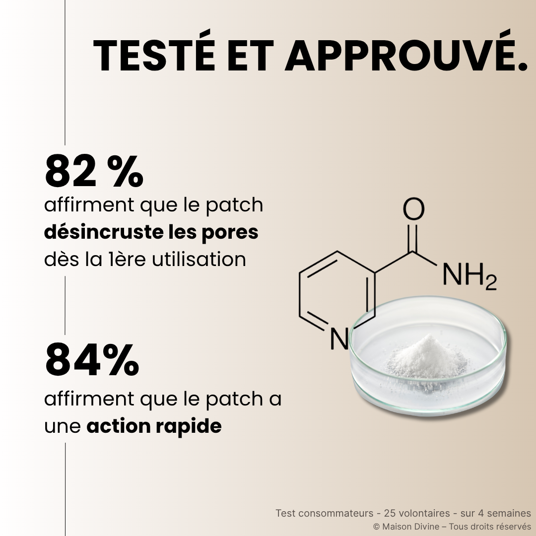 Nous recommandons de laisser le patch agir toute la nuit pour des résultats visibles dès le réveil. Une pose de 6 à 8 heures est idéale pour permettre aux actifs de purifier en douceur.